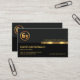 At the upper left corner is a gold quotation mark logo you can use. To the right of this, just above the gold stripe is the business name. The black layer below has your prestigious name, job title and the contact details. A slogan caption to publicise your services is at the lower right corner.