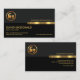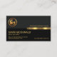 Overleaf, the same design theme is used. Above the gold stripe is the business name with the contact details and slogan option directly underneath. The gold logo is at the upper left corner.