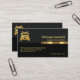 Overleaf, the same design theme is used. The gold logo is at the upper left corner. Towards the gold tab are the business name, contact details and a slogan caption option. All lettering are in faux gold.