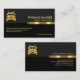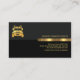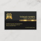 A grey and black column layered design is accentuated by a faux gold stripe near the centre. Riding this gold piece of success is your prestigious name and job title with a gold semi truck logo you can use on the left. In the black layer, is your business name and the contact details. A slogan to advertise your services is available towards the lower right corner.
