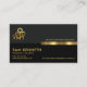 A simple retro grey and black columned design that is accentuated by a faux gold stripe near the center of the card. At the top grey layer you have a gold manpower logo at the left wall with the business name riding the faux gold tab at the right side of the card. Your prestigious name, job title and contact details are housed in the black layer underneath. A slogan to advertise your services is available near the lower right corner.