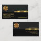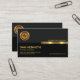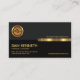 Overleaf, the same design theme is used. The upper layer has the gold logo and business name. The black column underneath houses your contact details and slogan option to publicize your services.