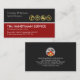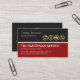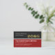 A retro grey and red layer with a white demarcation line. Over at the top lies your prestigious name and job title with a gold handyman tools design to its right. The tools can represent some of the services that you offer e.g. the drill-measuring tape can stand for home remodeling, construction etc. Just below this, in the red layer is the business name and slogan caption which you can change alongside the contact details.