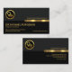 Just above the gold stripe is the business name with a creative gold global logo you can use, at the upper left corner. The black layer below has your prestigious name, job title and the contact details. A slogan to advertise your services is at the lower right corner.