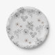 Grey Black Retro Y2K Hippie Flower Pattern Paper Plate