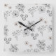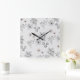 Grey Black Retro Y2K Hippie Flower Pattern Square Wall Clock
