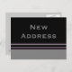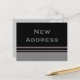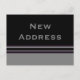 New Address plain simple business stripes postcard. Use the Customise feature to Change the black background colour to a colour of your choice. Change the font and font colour. The grey bottom remains the same. The stripe is black and purple. Use the Customise Feature to have your new address information printed on the back.Simple understated stripe design perfect for corporate business or personal announcements. Customise and Personalise the text on this product for any occasion or special event. Postcards are perfect for mass mailings. Postcards are an inexpensive choice whenever you need to mail a large number of announcements or party invitations. Discounts available when purchased in bulk.