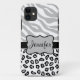 Grey, Black White Zebra Leopard Name Personalised Case-Mate iPhone Case