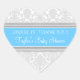 Baby shower thank you favour tag sticker in elegant and chic light grey, bright ocean blue, and white floral vintage damask pattern. Customisable with your own text, contact us for a colour change. The perfect way to decorate your baby shower favours and thank your guests for being a part of your special day.