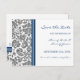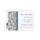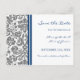 Wedding save the date announcement postcards in elegant and contemporary dark charcoal grey, dark navy blue, and white classic and vintage floral damask pattern, stylish and fully customisable with your wedding details. Also available in many other products for the wedding party.