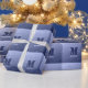 Grey blue ombre geometric mesh pattern Monogram Wrapping Paper. Gift Wrapping Supplies for anyone. Monogrammed and Personalised with your custom initial and name. Blue ombre gradient with geometric mesh pattern triangles modern design.