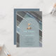 Welcome your little one with timeless charm. This baby shower invitation features a sweet teddy bear with a blue ribbon, framed in a classic arch design. The background showcases a traditional dark grey, with subtle hints of slate blue and green for a fresh, modern touch. The reverse side is a solid blue grey, offering a simple, elegant finish. Perfect for those who love a sophisticated yet cosy look, this invitation blends tradition with just the right dash of contemporary flair.