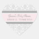 Baby shower thank you favour tag sticker in elegant light pastel blush pink, grey and white classic floral damask pattern. Customisable with your own text, contact us for a colour change. The perfect way to decorate your baby shower favours and thank your guests for being a part of your special day.