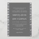 Formal text in elegant and modern typography is easily edited on this cool steely grey wedding invitation featuring a raised foil geometric border graphic inspired by mud cloth textile design giving this chic wedding invitation an upscale bohemian vibe.