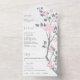 Grey branch with pink flowers initials wedding all in one invitation