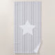 NewparkLane - Modern design Beach Towel, with a grey & white cabana striped pattern, and a big white star. Easy to customise in Zazzle with your own text for a personalised design.