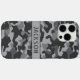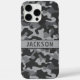 Customise this grey camouflage iPhone 16 pro max case with your name in a trendy modern CAP font in dark grey on light grey. It's masculine and perfect for your favourite military, hunting, country or outdoorsman!