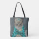 Grey Cat | Adorned With Bells Portrait Tote Bag