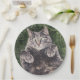 grey cat lying in the grass digital art paper plate