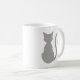 A silhouette cartoon of a grey cat with pink eyes. A pink star hangs from the cat's tail.