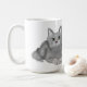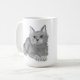 Grey fluffy cat mug that says cat mum. The text can be changed. Cute and simple grey cat illustration mug for cat mothers. Perfect mug for furbaby moms. This mug is great to give as a gift during mothers's day, birthdays, and Christmas. Give this mug to the cat with green eyes lover that you know.