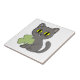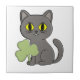 Whimsical grey cat clutching a four-leaf clover with bold yellow eyes and crisp outlines. A cheerful luck motif for kidswear, gift tees, and spring collections.