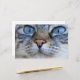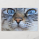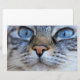 This design features an adorable image of a cat looking determinedly at the camera. It has a beautiful grey coat of fur.