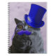 Grey Cat With Blue Top Hat and Moustache Notebook