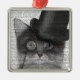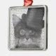 Grey Cat with Top Hat Metal Tree Decoration