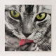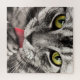 Grey Cat with Yellow Eyes Licking Paw Jigsaw Puzzle