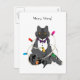 Grey Cat Wrapped In Christmas LIghts Holiday Postc
