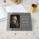 A guest book featuring your custom photo framed by a simple textured grey design. Beautiful for a celebration of life, funeral or memorial service.