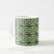 This mug has a mid-century modern design of rounded rectangles with ovals inside in retro shades of dark grey, pale yellow, and seafoam on a field of light grey. If you want the same design with different colours, message me.