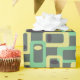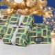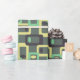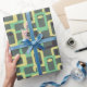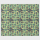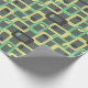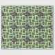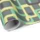 This wrapping paper has a mid-century modern design of rounded rectangles with ovals inside in retro shades of dark grey, pale yellow, and seafoam on a field of light grey. If you want the same design with different colours, message me.