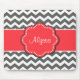Show off your personal style in a fun way with this grey chevron and coral personalised mousepad.