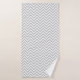 Stylish bath towel set featuring a grey and white chevron pattern on the bath towel. The hand towel is done in light grey, with a grey and white chevron pattern on either end, with a mint green and white polka dot ribbon accent. The wash cloth is done in a solid mint green. Personalise the white one letter monogram, on the hand towel to suit your needs.