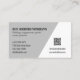 Flat business card for a professional photographer, where you can showcase your work in a striking photo collage with four vertical photos in a unique collage layout. Add your name and speciality or title or service on the cover in black letters against grey. Add your contact information on the back along with your QR code to help your clients access your social media and website. An eye-catching photo collage business card for a licensed photographer. Photo collage template business card personalised with QR code and your contact information.
