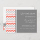 Wedding save the date announcement postcards in elegant and contemporary charcoal grey, peach orange pink, and white modern chevron zigzag pattern, stylish and fully customisable with your wedding details. Also available in many other products for the wedding party.
