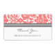 Elegant Wedding thank you labels in stylish charcoal grey, peach orange pink, and white vintage damask floral pattern, the perfect addition to your wedding, available in many matching wedding products. Perfect for wedding favours or as wedding wine bottle labels.