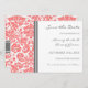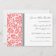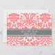 Wedding save the date announcement card with elegant and contemporary peach orange pink, dark charcoal grey and white classic and vintage floral damask pattern. Customisable with your wedding details, available in a wide range of matching wedding products. Contact us to request a colour change or a custom product.