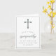 Minimalist sympathy card in white with a grey cross, a grey border, and elegant grey fonts.