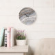 Grey Curly Marble: Golden Veins Large Clock