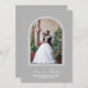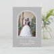 A modern custom photo grey arch wedding thank you card to send to family and friends which includes ample text space on the reverse side for you to write your own words of gratitude.