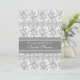 Bridal shower invitations in elegant grey and white classic floral damask vintage pattern, chic and feminine, customisable with your shower details. Also available in thank you cards and invitations for the bridal party.