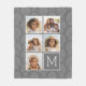 Grey Damask Pattern 5 Photo Collage Monogram Fleece Blanket