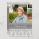 Custom photo 75th Birthday party invitations in elegant grey, and white classic floral damask vintage pattern. Add your name, photo, and party details for a unique and stylish birthday party invitation.