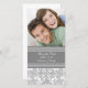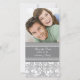 Wedding save the date photo cards in elegant and modern grey and white with romantic floral vintage damask pattern. Available in matching postage, and many other products for your wedding.