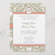 Grey Damask with Coral & Grey Wedding Invitations