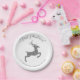 Grey Deer Shape In Faux Glitter Texture With Text Paper Plate