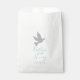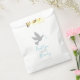 Simple graphic grey dove wedding or couple celebration thank you favour bags. Personalised with your own couples names. Original dove with two blue ribbons graphic art and design by www.mylittleedenweddings.com